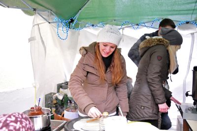 Bei der Familie Petri gibt es nach einer Pause im letzten Jahr wieder die leckeren Spießbraten Brötchen. Lumumba und auch Kakao wärmen von innen.