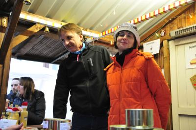 Im Zelt der Ü50 Truppe schlägt mir schon beim Betreten würziger Alkoholduft entgegen. Das kommt eindeutig vom selbst angesetzten Glühwein mit frischem Saft von Orangen und Zitronen und Gewürzen. Wem das nicht genügt, pept das Gebräu noch mit einem Schuss Amaretto auf. Ich darf jetzt auch einen Glühwein, den es in rot oder weiß gibt trinken. Meine Marktrunde ist zu Ende und ich bin froh die Kamera vom Hals zu bekommen.
