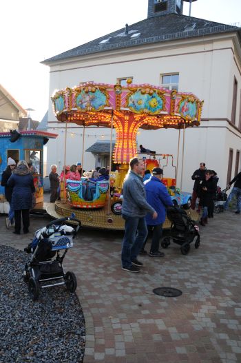 Endlich, der lange Redefluss macht dem Gesang Platz. Der Faruenchor, die Discordia86 und der Männerchor nehmen ihre Plätze ein. “Freuet euch all” erschallte in der Dorfmitte, gefolgt von “Zündet die Lichter der Freude an”. Nach der Musik ströhmte die Menge rasch auseinander zu den Ständen und die Kinder eroberten das Karusell.