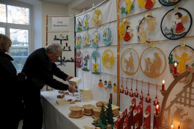 Frau Laux aus Breithardt hat expandiert ihr Sortiment ist umfangreich. Sie näht viele nützliche Sachen aus farbenfrohen Kinderstoffen. Schals, Schürzen, Taschen, Babywickeltaschen und sogar Engelchen als Anhänger und Feen aus Märchenwolle. Einfach bezaubernd schön.