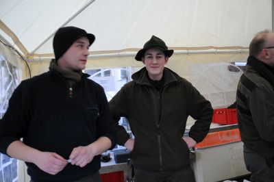 An Stand der Wingsbacher Jäger war kein schönes gemeinsames Bild aller Beteiligten zu schießen. Ständig wusselten die Männer zwischen Theke und Gefriertruhe hin und her um schnellstens die Kundenwünsche nach dem Wildbret fürs Fest zu befriedigen. Der Leon kennt mich und hatte ein nettes Lächeln für die Kamera übrig.Danke.