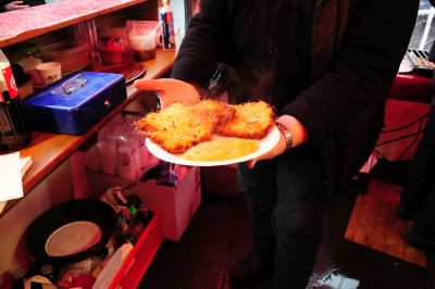 Silvana Castellucci und Jürgen Schwarz.Der Stand eine Institution. Die knusprigen Teile werden mit Apfelmus serviert. Die jüngeren Kunden bevorzugen eher die hauchdünnen Kartoffel Chips. Da alles aus frischen Kartoffeln gemacht wird ist die Qualität super. Wer möchte probiert noch die leckeren Liköre und Schnaps gibt es auch.