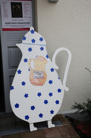 Das Café der Turnerfrauen lockt mit blau weißer Kaffeekanne in die Alte Schule.Lecker der selbst gebackene Kuchen. Hier steuert jede Bäckerin ihr bestes Hausrezept bei.Gemütlich warm ist es, doch ich muss weiter.