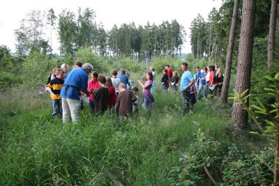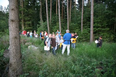 Startpunkt war die Sport und Kulturhalle und um 20.30 Uhr ging es los. Die Anweisung hieß: Wir gehen rechts vor dem Friedhof in den Wald!? Ja, aber da ist doch kein Weg. Spätestens hier sollte der interessierte Leser ahnen, dass Gerhard Twardawa und seine Helfer hinter der Sache steckten. Er hatte den Weg erdacht, ausgetestet und auch die Fragebögen ausgearbeitet, die unterwegs immer wieder kräftig beschrieben wurden.