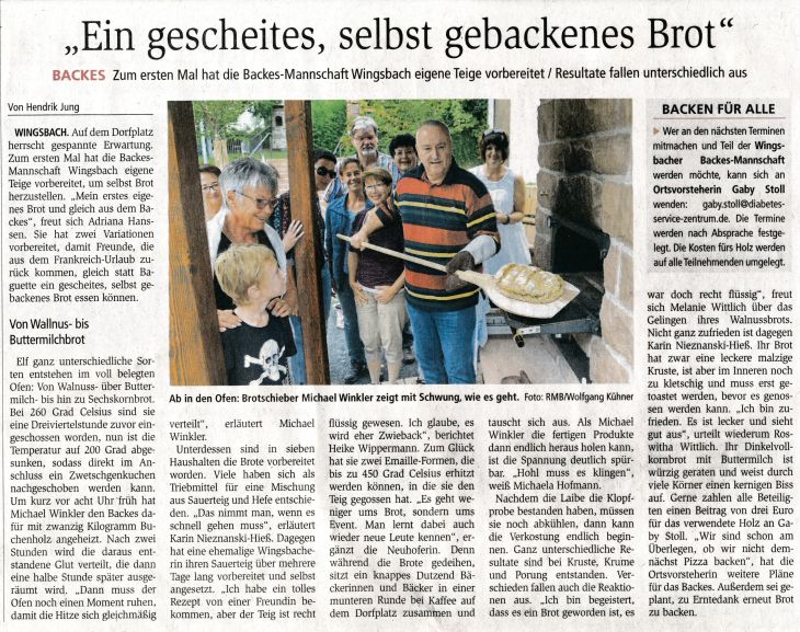 Herr Winkler und Frau Stoll hatten noch Teig für das bekannte Schüttelbrot vorbereitet,aber auch hier zeigte sich, dass nicht alles beim ersten Versuch gelingen muss. So ging am späten Nachmittag der erste Wingsbacher Backtag zu Ende.Wir müssen noch viel lernen und uns Mut zusprechen, damit wir nicht zu früh aufgeben. Es war ein super Event und wird sicher wiederholt werden. Für ein “gescheites, selbstgebackenes Brot” tun wir so Einiges.