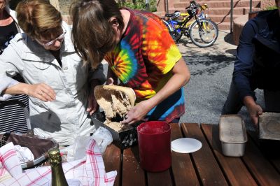 Nach einer gefühlten Ewigkeit darf Michaela Hofmann-Mager anschneiden. Und...??? Das Ergebnis kann sich sehen lassen.Die Geschmacksprobe ist himmlisch. Obwohl einge Rezepte noch mal gründlich überarbeitet werden müssen, leider gehört auch meines dazu, aber man lernt ja daraus.