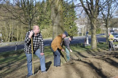 Das Frühjahr hat meteorologisch schon begonnen und somit auch die weiteren Arbeiten für die Boulebahn. Vom Förster geschlagene Holzstämme wurden entastet.