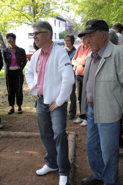 Es ist der 30. April 2011. Die Boulebahn wird offiziell eingeweiht mit Presse ,Ortsvorsteher Petri, Ortsbeirat und Bürgermeister Hofnagel, der gerne, sollte hier im Sommer eine Wingsbacher Boulemeisterschaft stattfinden, einen Pokal stiftet. Interessierte Wingsbacher Bürger und vor allem diejenigen die am Bau beteiligt waren sind gekommen. An einer Pinwand hängen Fotos vom Werdegang der Bahn, man sieht hart arbeitende Freiwillige und viele gelungene Schnappschüsse. Jeder kann sich ein Foto seiner Wahl mit nach Hause nehmen. Aber zu erst die Rede des Ortsvorstehers, der gleich den ersten Lacher erntet, als er bekannt gibt: ” Im Rahmen des Wettbewerbs “ Zukunft Dorfmitte” standen für den Bau nur 1000.-€ zur Verfügung und 1017.-€ hat es gekostet!” Das nennt man Dorfgemeinschaft und so kommt bestimmt Leben ins Dorf. “ Die Umsetzung des Projektes ist typisch für Wingsbach - alles selbst gemacht,” freut sich auch M. Hofnagel.