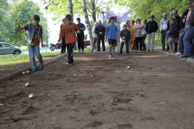Da die Kids bekanntlich keine Berührungsängste kennen, zeigen sie den Erwachsenen erst mal, wie das Boule spielen funktioniert.