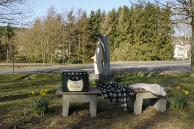 “Na, klar,” und malerisch drapiert zwischen den Osterglocken hat er den Kasten auch noch.