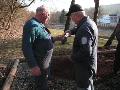 Erwin Deußer hat beschlossen: Wer so fleissig arbeitet darf auch einen Schnaps geniessen. Na, dann prost.