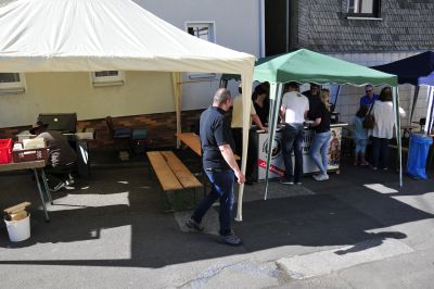 Das grüne Dach gehört der Feuerwehr hier konnte man seinen Durst löschen. Neben an die Jäger, sie hatten Wildbratwürste im Gepäck und bauten den Grill auf.