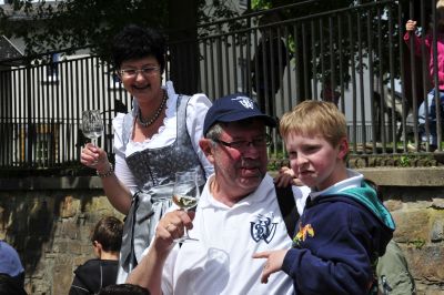 Die Bleidenstadter Sänger haben sich den Dorfplatz als Wanderziel ausgesucht und machen was bei einem guten Glas Wein?