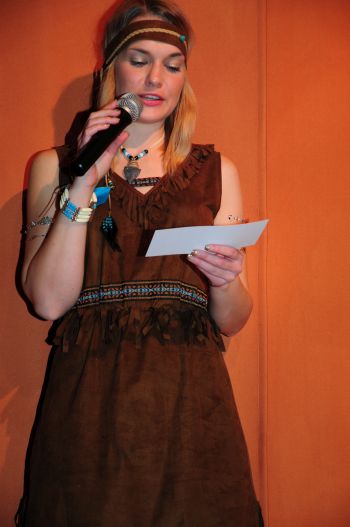 Jetzt gehts los! Jana mit Mikro bewaffnet eröffnet die Feier für die bunte Narrenschar die schon allerseits die herrlich geschmückte Halle bewundert hat. Alle Plätze besetzt, dann kann das Jubeljahr starten. Die seit 20 Jahren bestehende Kerbegesellschaft Wingsbach ist zum 3. Mal Veranstalter der Fasnacht und die Kids sind morgen zum Kinderfasching eingeladen. Ohne einige wichtige Infos geht es nicht. “Bitte kurz zuhören”, der Gong ertönt.”Wenn ihr nach dem Ton nicht am Platz seid, läuft die Show ohne euch. Das Programm will euch verzaubern und begeistern und wenn alle mitmachen, wird uns das auch in diesem Jahr gelingen.” Helau. Die Indianerfrau hat gesprochen. Ja, recht hat sie, denn sie trägt die Verantwortung.