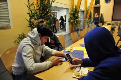 Die Jungens kennen nur einen Blick: den aufs Handy! Überblick? Nee, höchstens über den Nudelsalat.