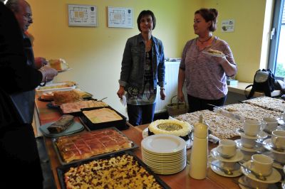 Oh, ja, Jetzt ein heißer Kaffee und ein Stück selbstgebackenen Kuchen.Anja und Antje warten schon auf diverse Leckermäuler. Nebenan gibt es nicht nur Kaffee sondern auch Worscht un Spundekäs. Sabine, Thomas, Larissa, Conny und Lena bedienen hier. Leider habe ich den Fotoklick in diese Abteilung vergessen, wohl aber dreren Service genossen!