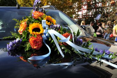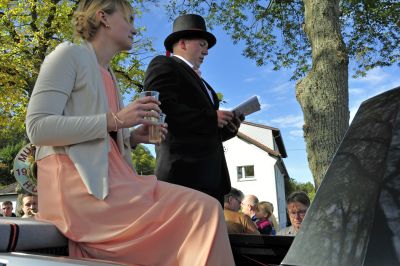 Nobel geht es heute zu, in dieser Karosse fahren Jana und Pascal durchs Ort.