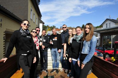 “Vergiss die Steckeröther nicht”, rief mir Jana noch zu, als ich mit der Kamera weiter eilte. Hier also die Kerbegesellschaft Steckenroth. Und neben an, “a very old Auto!” Na, ja 1997 ist auch schon ein paar Tage her. Sigi Cimadom lenkte es.Steffen Schmidt ist stellvertretender Kerbevadder für´97. |