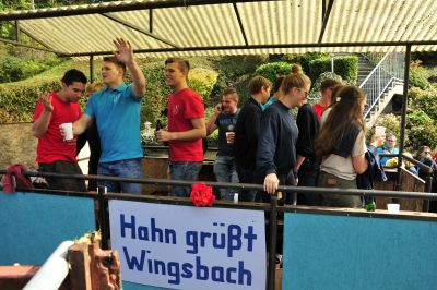 Ein Kameraschwenk und die Hahner sind auch im Kasten. Sie singen gerade: “Kaba, Kaba hält sie gesund.” Damit können sie wohl kaum die Wingsbacher meinen?!