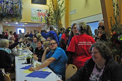 Alle Gäste schauten noch dem sich durch Wingsbach schlängelnden Lindwurm zu.In der Halle lockte bereits der Kuchen. Aber auch Deftiges, wie Worscht un Spundekäs waren zubekommen. “Nix da, Essen gibts später!”