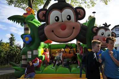 Manchmal sollte man einfach wieder mal Kind sein können. Riesen Vorteil - die Kids trainieren nicht nur die Balance, sondern auch gleich die diversen Kuchenstücke wieder ab.Hüpfburg - bei dem Wetter der Kracher.