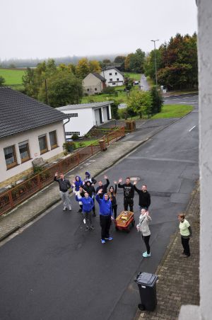 Bevor der Zug anrollt muss man noch schnell gesehen haben, wer sich in der Dorfmitte oder auch vor den Häusern bei dem Kaiserwetter Wetter versammelt hat. (Langsam bitte, alles 7 Sek. ein neues Bild)