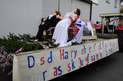 Motivwagen: “Königliche Hochzeit in Great Britain.”Dass der Harry geheiratet hat ist ja positiv, aber dass seine Frau keine Jungfrau ist! Not very british.