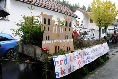 Der Reinhold Hieß gehört zu den Urgesteinen der Kerb und trotzt mit seinen stolzen 90 Jahren auch noch dem Wetter. Die jungen Leute haben versprochen sie helfen beim Wagen schmücken. Schön ist er wieder geworden, der Erntewagen. Er gehört einfach zur Kerb.