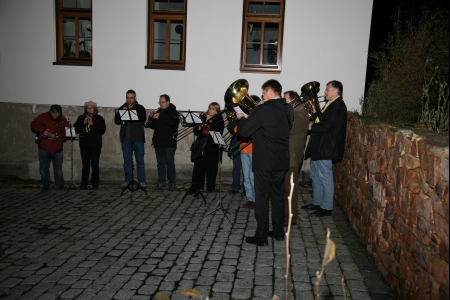 Frau Susanne Müller vom Elternbeirat hatte irgendwie gezaubert und es hin bekommen, sogar zwei verschiedene Gruppen von Blechbläsern zu bestellen. Sie spielten auch zusammen, nach dem man fest stellte die Noten sind bei allen identisch. Ein besonderes Highlight des frühen Abends.