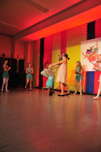 Die Kinder Tanzgruppe des TGV sind schon in der Start Position.Direkt vor der Bühne stehen die jungen Zuschauer.Man darf ja nichts verpassen.Die Tanz- Gruppe der ältern Mädels ist auf den Fotos vom Freitag zu sehen.