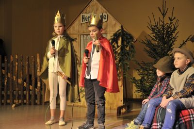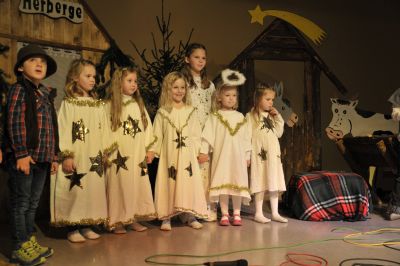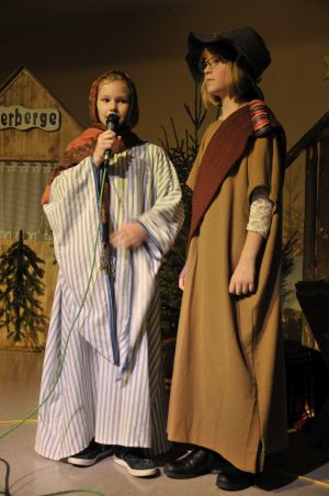 Der Wirt war zuerst nicht nett zu Maria und Josef:”Ich kann euch nicht retten habe keine freien Betten!” Als er erfährt,dass Maria schwanger ist lässt er sich erweichen. “Dort im Stall bei Ochs und Rind ist Platz genug für euer Kind!” Man sieht richtig, wie erleichtert Josef und Maria im Stall ankommen.