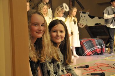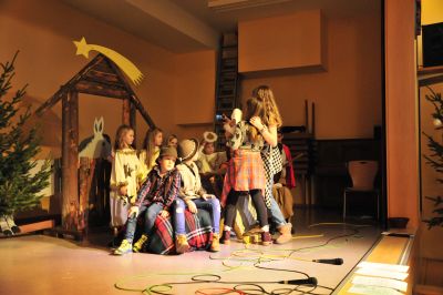 Alle sind nun im Stall versammelt. Die Kinder machen, was die Kinder heute so machen: noch schnell ein Selfie mit Jesus!