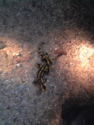 Ein unvorhergesehenes Ereignis waren die beiden Feuersalmander mitten auf dem Weg. Frank Wittnich und Tom Schönke und haben sie festgehalten.