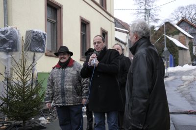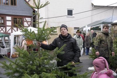 Vor der alten Schule treffe ich auf Herrn R. der Glückliche hat schon einen Weihnachtsbaum gefunden. Bezahlung, Fehlanzeige der Förster ist noch nicht da und so heisst es das gute Stück irgendwo deponieren, denn der Festbraten sollte auch bald ausgesucht werden. Sonst geht es ihm wie Olaf M. der vorne in der Schlange laut rufen muss: ”Rehrücken ist aus Susanne, was soll ich nehmen? ” Ja, beim Kauf von Wildbret am Stand der Jäger sollte man schnell entschlossen sein.
