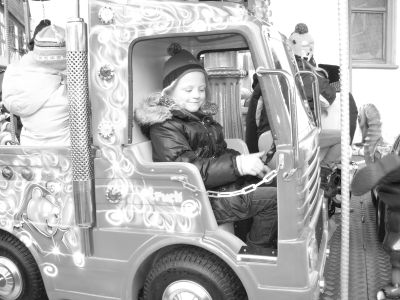 Viele Kinder sind auf dem von Wingsbacher Firmen gesponserten Kinderkarussell zu finden. Katharina fragt, ob ich eine Runde mitfahren will, was ich aber in bezug auf das gute Essen ablehne. Mir gefallen Fahrgeschäfte super gut, wenn ich zusehen darf wie andere fahren. Lose für die Tombola erstehe ich bei den Männern in den grünen Anoraks. Die Mitglieder der Skigruppe haben diese Aufgabe übernommen.