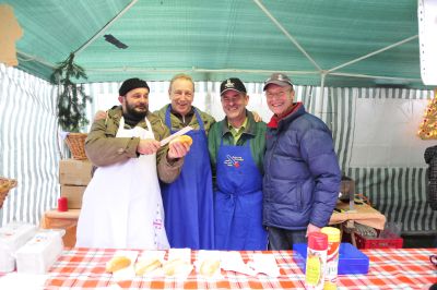 Bei der Familie Petri gibt es nach einer Pause im letzten Jahr wieder die leckeren Spießbraten Brötchen. Lumumba und auch Kakao wärmen von innen.