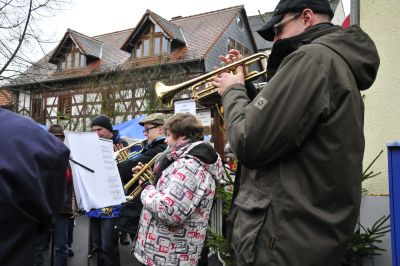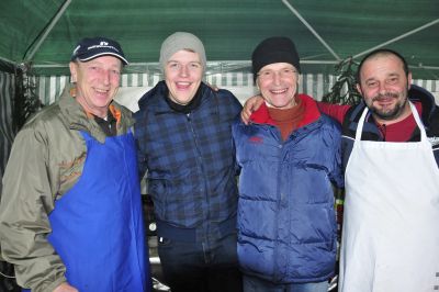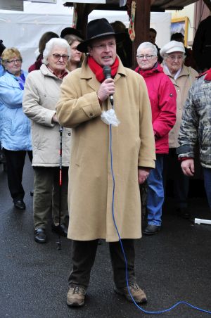 Hier im Hof ist auch der Förster Schneider mit seiner Frau Gudrun zu finden und wer möchte, kann einen frisch geschlagenen Baum aus dem heimischen Wald nach Hause tragen. Der Vorsitzende des TGV Gerhard Twardawa, seines Amtes Tonmeister, ist genau so wie Andreas Petri ständig auf Achse und so bin ich froh, ihn hier gleich mit aufs Foto zu bringen.