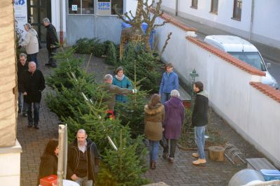 Förster Schneiders “Revier”! Hier fällt die Entscheidung nicht leicht, alles schöne Bäume. Welcher soll es nun sein, Frau Petri? Der Angestellte von Herrn Schneider verpackt den Erwählten fachmännisch und Frau Gudrun Schneider hat das Einnehmende Wesen. Egal, muss ja auch einer machen. Jetzt kann das Fest kommen.