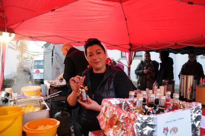 Neben an sind die Ü50ziger, sie schenken Glühwein in rot und weiß aus. Nächstes Jahr gibt es aber nur noch den Roten, da die Warteschlange zu lang wird, wenn ein neuer Topf angesetzt werden muss. Hier gibt es keine Fertigware!! Nur gute Zutaten, so entsteht ein Spitzen Glühwein, dem nur noch ein zusätzlicher Amaretto mehr Umdrehungen verleihen kann.