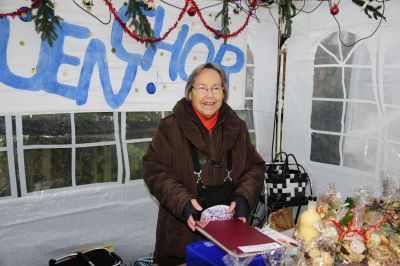 Christa Jürgen, noch allein am Stand des Frauenchores. Keine Sorge bald kommt Verstärkung.