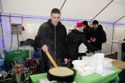 Die Kerbegesellschaft macht Crepes schon im siebten Jahr. Es gibt kaum einen im Team, der sich nicht auf die Technik des Backens versteht Der Absatz? Wie immer bestens.Nur warten musste man schon etwas, um die Leckerei zu bekommen.