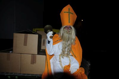 Endlich,es ist schon dunkel und da kommt das Nikomobil mit St.Nikolaus. Heute hat er eine Bitte an die Kinder. Er wünscht sich “Heut ist Nikolaus Abend da”,und wirklich die Kinder singen drei Strophen. Der fromme Mann ist total begeistert und teil nun seine Geschenke aus.