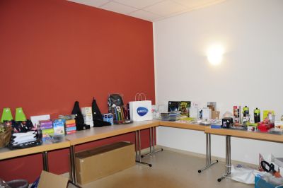 Hier warten die Preise der Tombola auf die Verlosung.