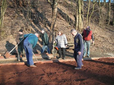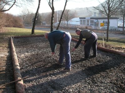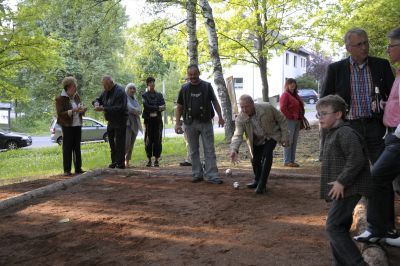 „Besonders wichtig war uns auch, dass es Sitzgelegenheiten rund um das Spielgelände gibt“, erklärte J. Behrens. Nun fehle nur noch eine abschließbare Kiste, in der die Boulekugeln gelagert werden können. Aber auch diese wurde mittlerweile angebracht und anschliessend ein Spielchen gemacht, um sich von der schweren Arbeit zu erholen.