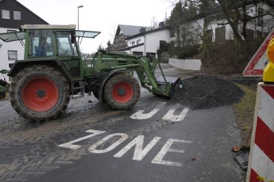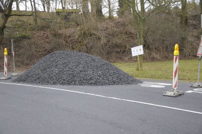 Es geht weiter am 11.02.2011 wurde der Schotter auf der Dorfstrasse abgekippt. Wo sind die Männer mit den Schippen?