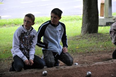 Die Jungen kümmern sich um die ins Aus geworfenen Kugeln.
