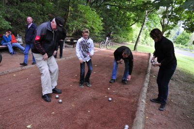 Sonntag 26. August 15°° Uhr es regnet nicht, das Event findet statt! Es weht ein kühler Wind, gerade mal 15°C. Ankommende Bouler sind warm gekleidet.