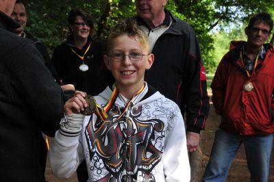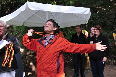 Wie ein Olympionike nimmt Andreas seine Bronzemedaille in Empfang.