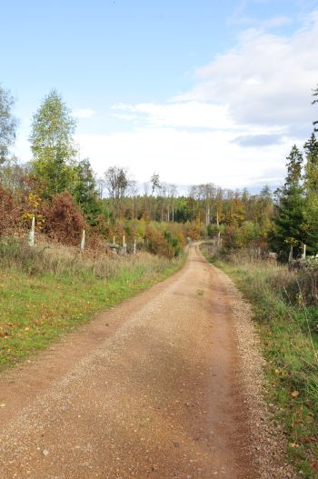 Die Hagebutte bringt in diesem Jahr viele Früchte. Die Blätter der Brombeere haben besonders schöne Farbschattierungen. Die bunten Buchenblätter wetteifern mit dem blau des Himmels um die Gunst des Betrachters, aber nur gemeinsam mit den Sonnenstrahlen wird es ein Bild. Das Buchenblatt hat seine Herbstfarbe eigentlich schon erreicht, doch ein winziges Stückchen grün hält sich hartnäckig. Die gemeine Eichengallwespe hat ihren Gallapfel auf die Rückseite eines Eichenblattes geklebt. Eine kurze Windböe biegt die jungen Birken in eine Richtung. Der neue Wald lässt sich nicht aufhalten,doch im Vordergrund sind immer noch die Hinterlassenschaften des Sturmes “Kyrill” zu erkennen.