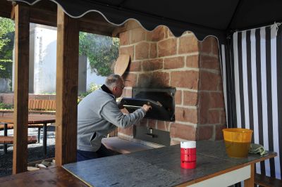 Herr Winkler der “Backesflüsterer” ist mit dem Ofen schon bestens betraut und hat einfach ein Gefühl für die Glut und wann genau diese heraus muss, damit das Backwerk in den Ofen kann.Die Flammkuchen waren ein Gedicht.